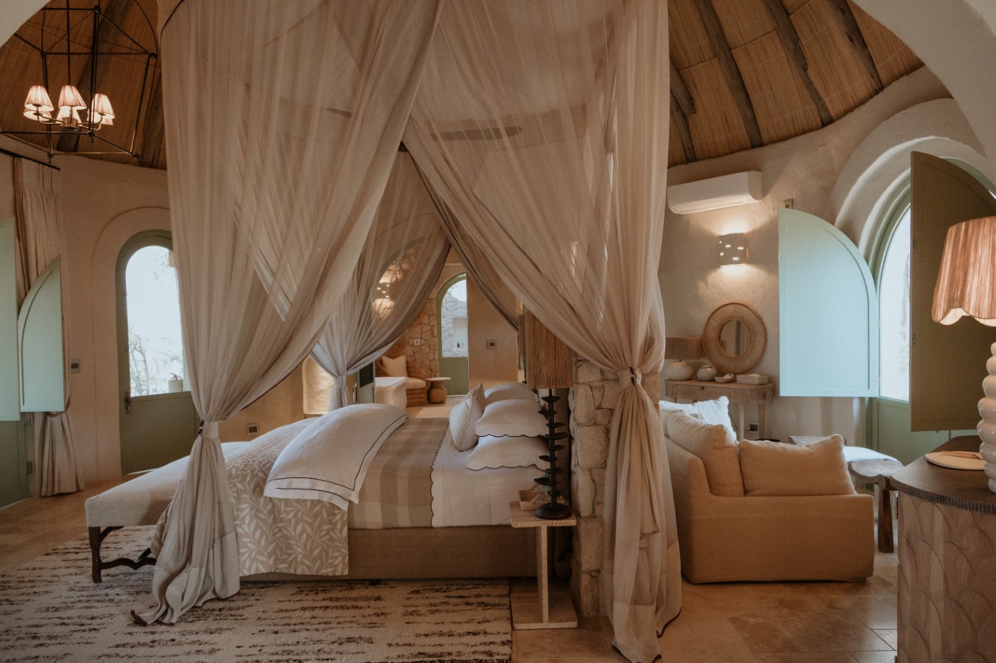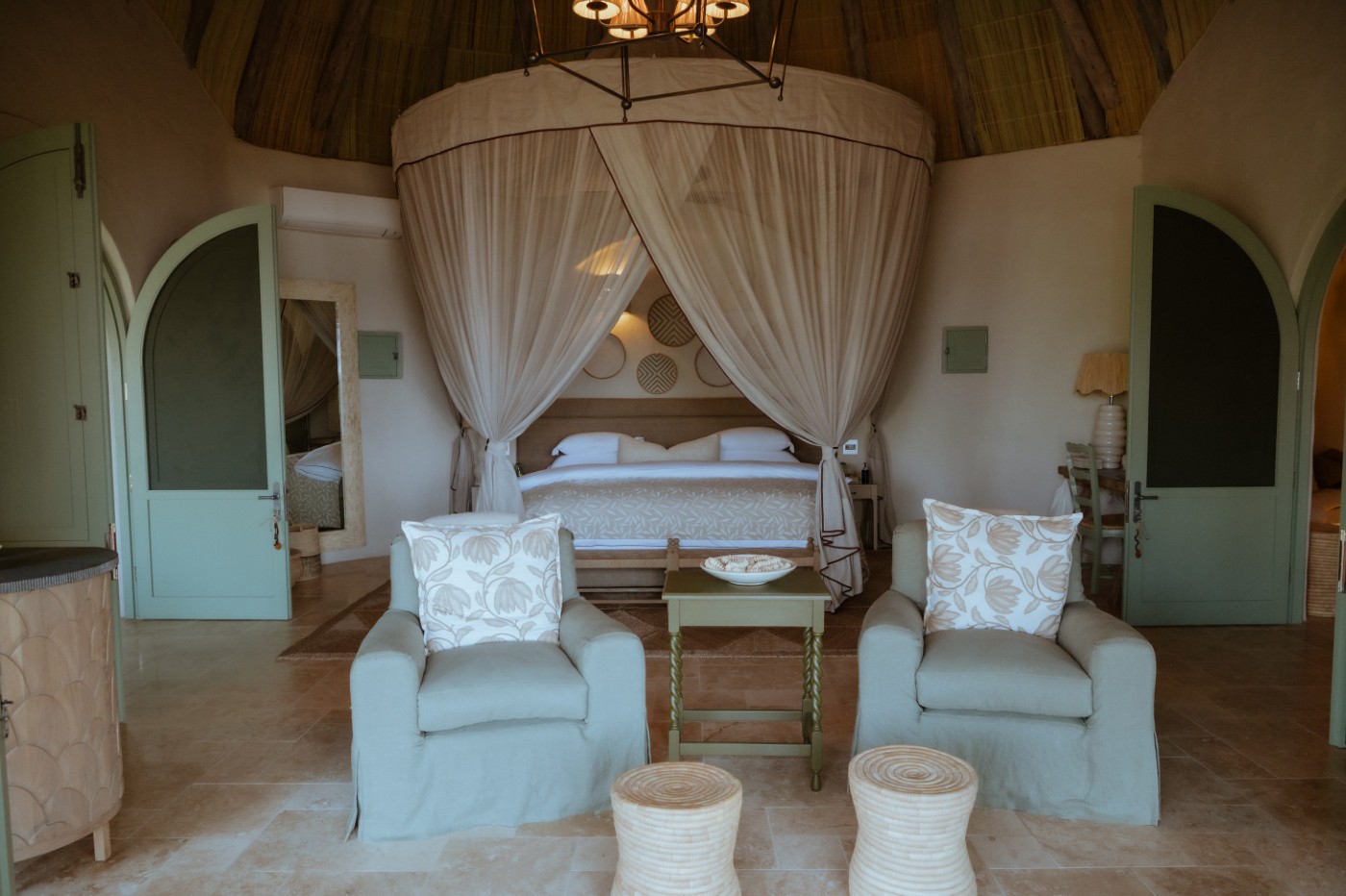 Mpala Jena Private Villas offer an exclusive and luxurious safari experience on the banks of the Zambezi River, just a short distance from Victoria Falls in Zimbabwe. Located within the Chundu Concession in Zambezi National Park, this sought-after destination combines exceptional wildlife viewing with easy access to one of Africa’s most iconic natural wonders. Building on the success of the original Mpala Jena camp, the introduction of these private villas elevates the experience for discerning travellers seeking privacy, space and personalised service in a spectacular riverfront setting. Each villa is beautifully designed in collaboration with architect Julia Rutherford and award-winning interior designer Tracy Kelly, blending the charm of the original camp with a contemporary interpretation of Puglian architecture. Steep thatched roofs, graceful arches and natural textures create cool, airy interiors that are both elegant and inviting throughout the year.